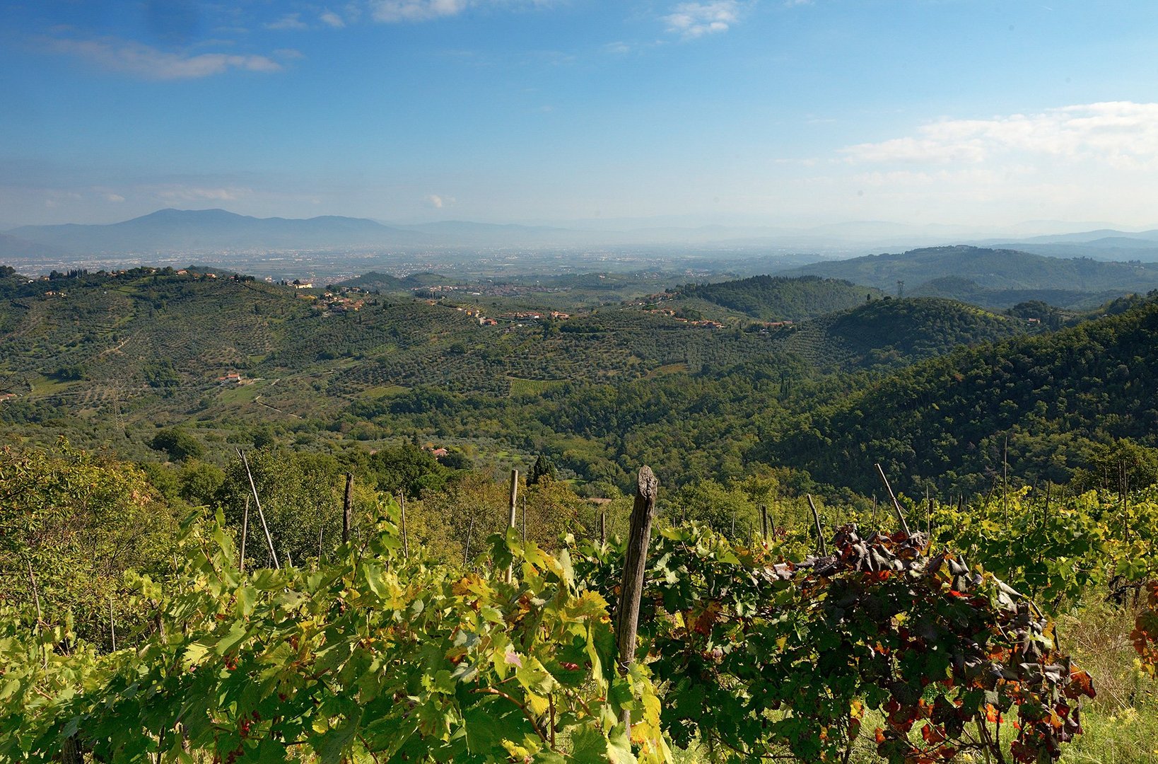 As the path from Montalbano leads to Fucecchio, the landscape loses not only the woody aspect but also its harsher one; rounded profiles of centuries-old hills in continuous 'movement' for their geological (purely clayey) constitution, which only a grueling plurisecular work carried out by generations of peasant families, organized on the sharecropping contract, was able to stabilize, preventing it from slipping down. A painstaking job, repeated for centuries through simple but good agricultural tools; a work that regulated the shallow waters with a series of terraces and that had an aesthetic result known and admired all over the world (the countryside of central Tuscany). An authentic garden, as Tuscany has been defined during the 18th and 19th centuries by foreign travelers on the Grand Tour.  A landscape that we find and can also admire in Leonardo Da Vinci's paintings.